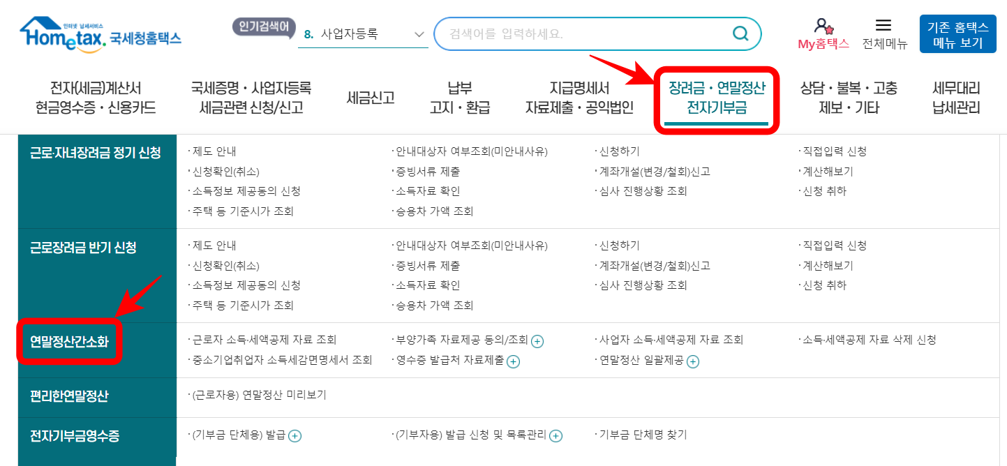 2. 연말정산 미리 보기 서비스 이용하기